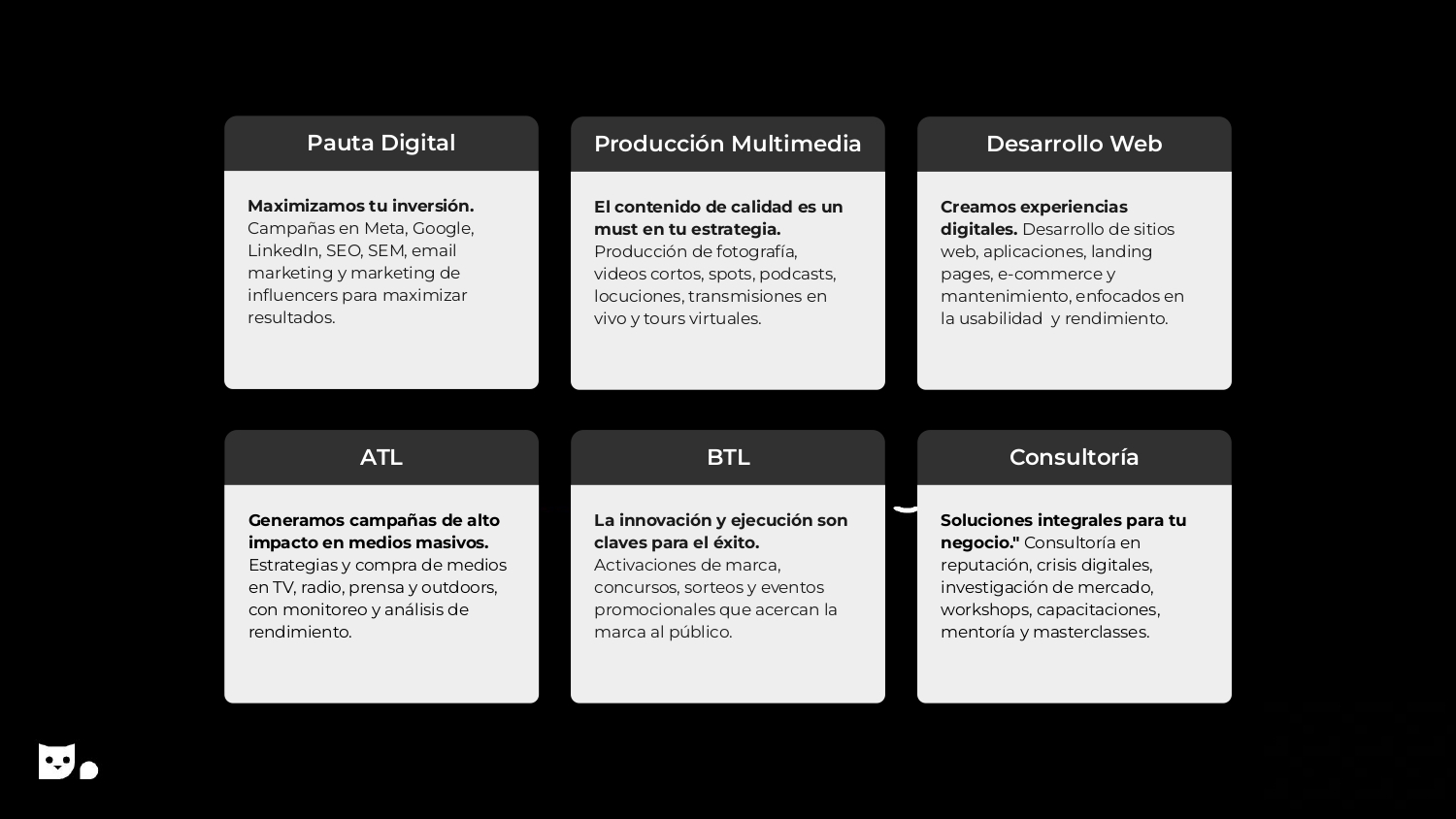 • Branding, Social Media, Creative Direction, Producers, Web Development, Digital Advertising