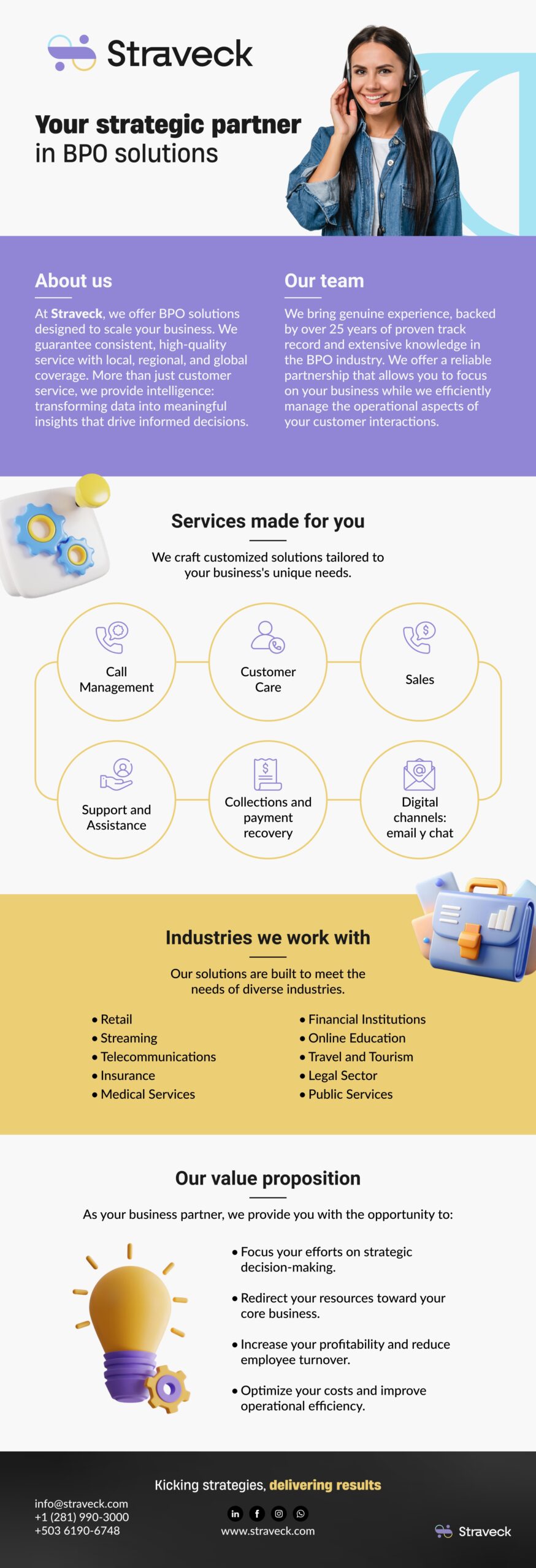 • Solutions and needs for your business, including payment collection and recovery, call management, customer service, support, and business assistance.