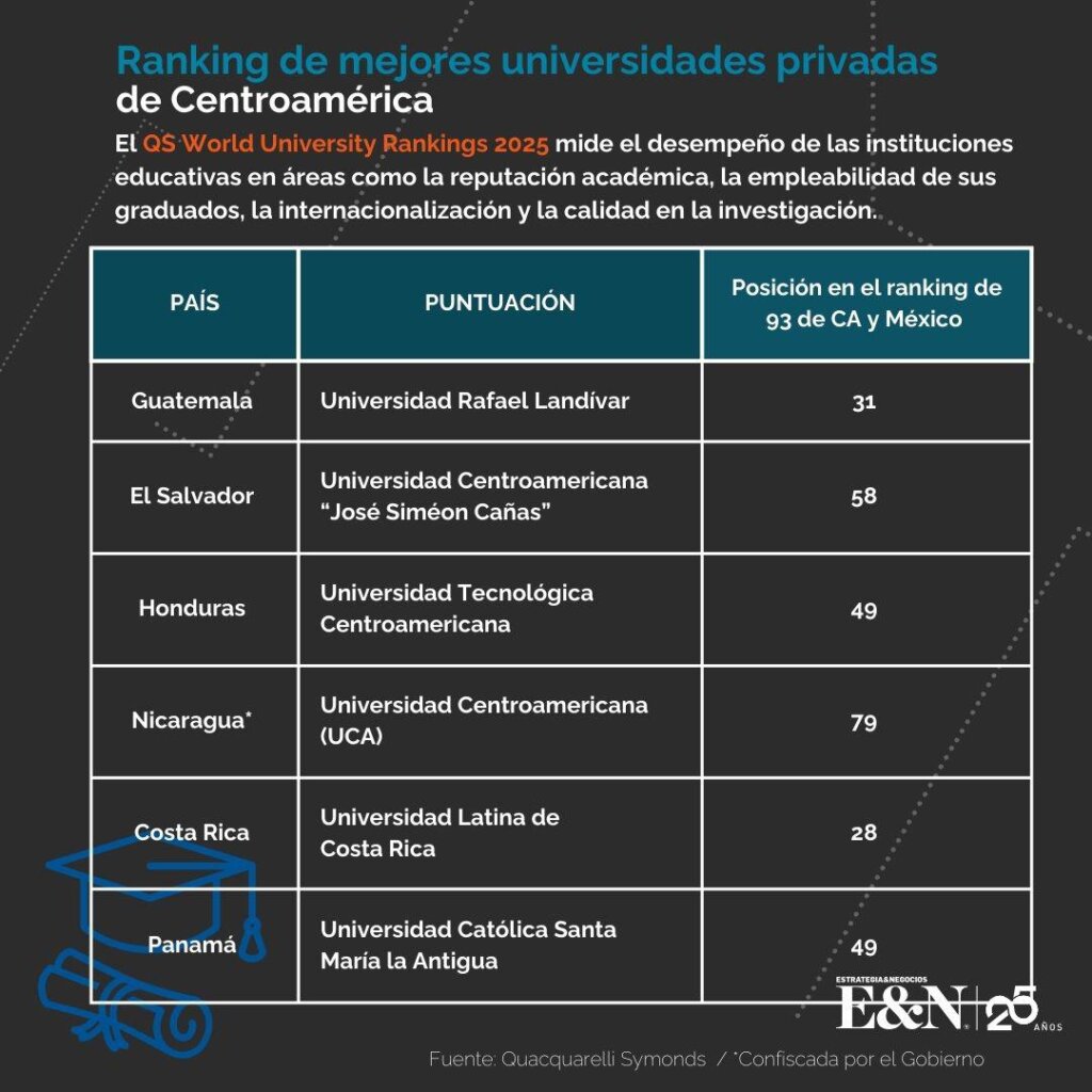 The Universidad Latina de Costa Rica was recognized as one of the #1 private universities in the region (sixth in the region), according to the QS Ranking 2025 in Latin America.
